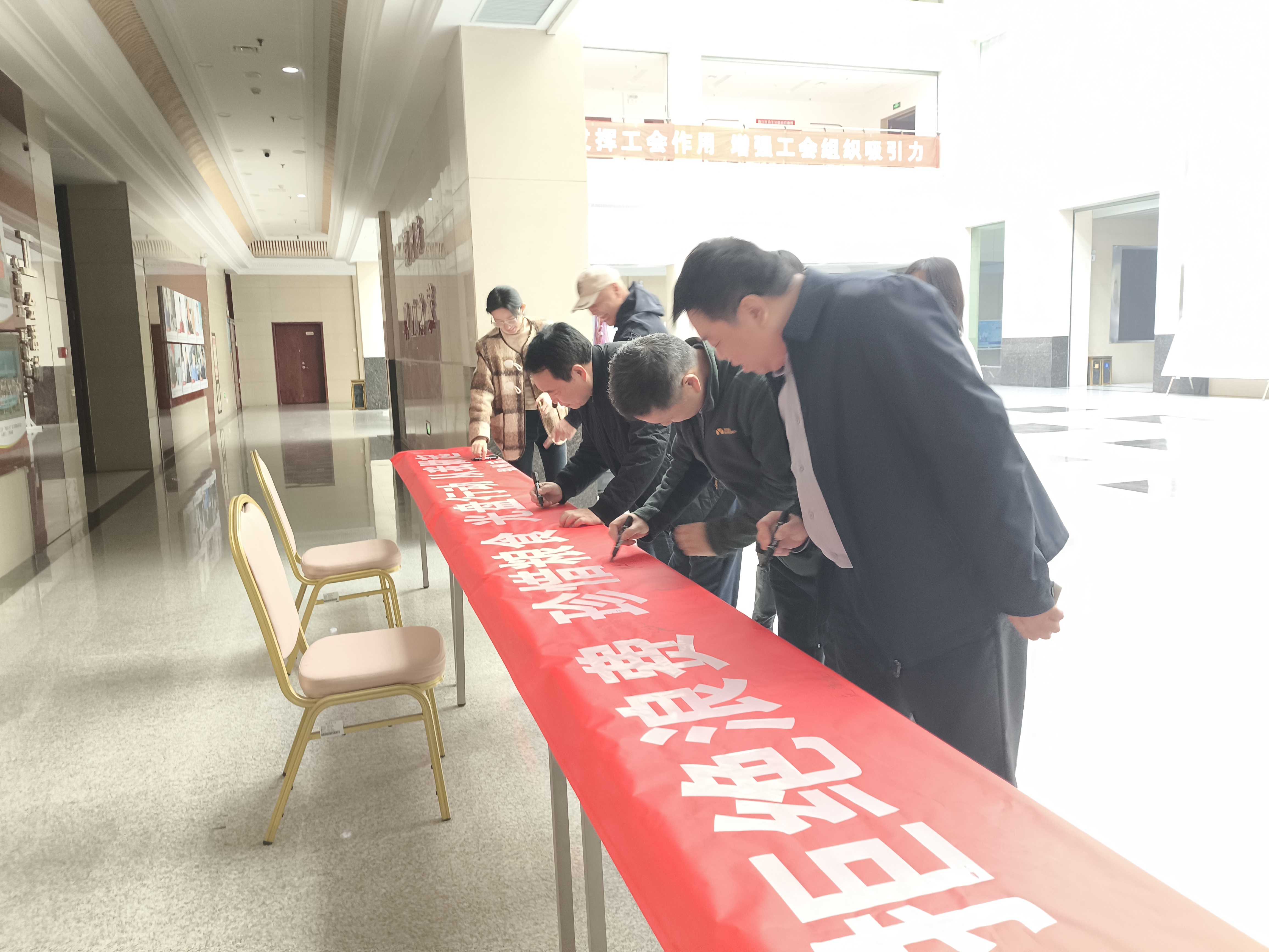 活动首先由办公室负责同志宣读了《郑州市总工会文明餐桌倡议书》,号召大家坚持从自身做起,养成“拒绝浪费、珍惜粮食、光盘行动、从我做起”的餐饮理念,积极参与到“文明餐桌”行动中来,杜绝舌尖上的浪费,用“小餐桌”带动“大文明”,争做珍惜粮食的带动者,自觉引领文明健康新风尚,随后大家纷纷在倡议书和活动条幅上进行了签字。