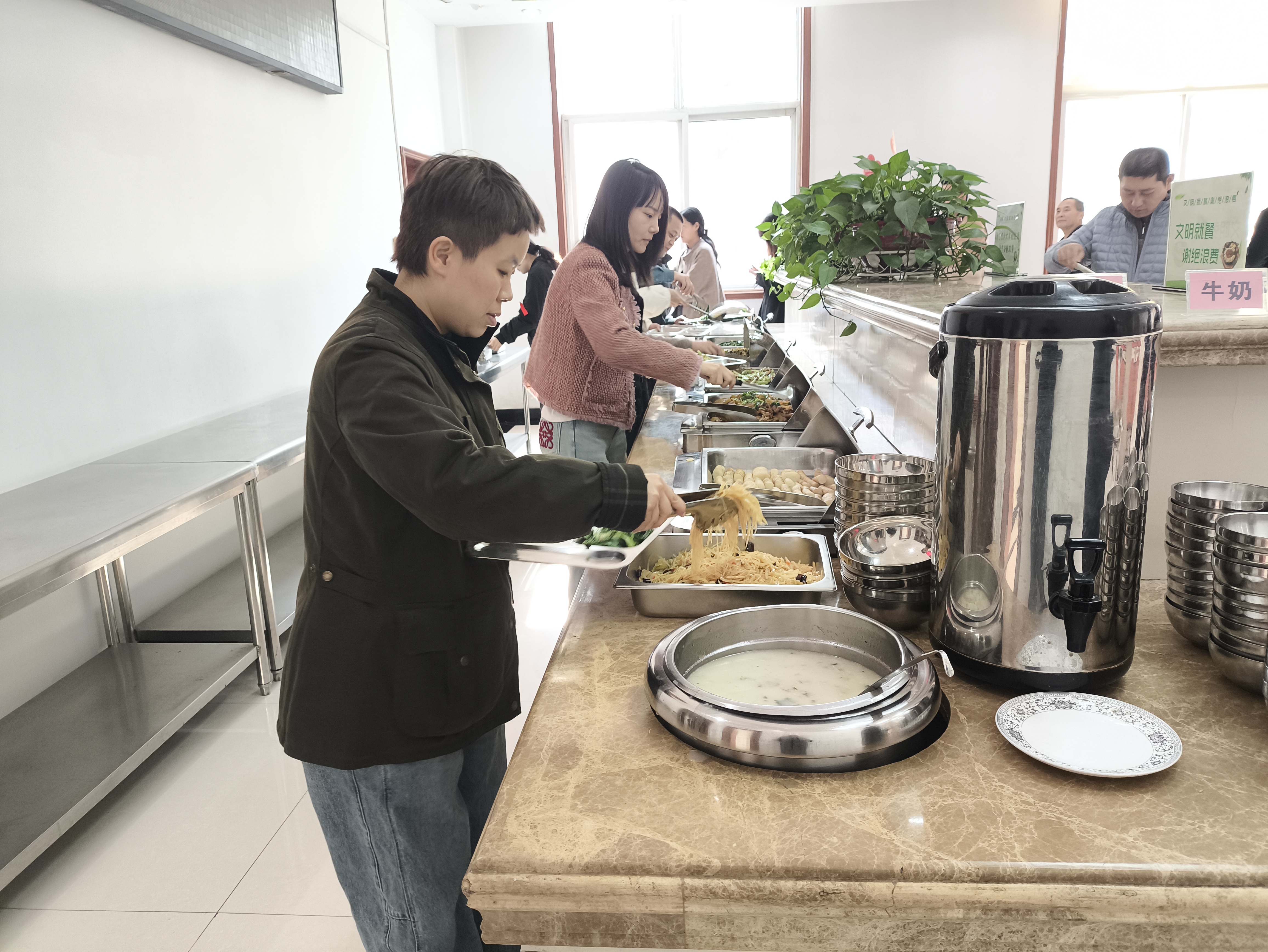 午餐时间,大家自觉排队,使用公勺公筷按需取餐,把俭以养德、俭以养性、俭以养身的理念变成个人的自觉行动。