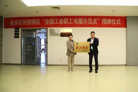 12月21日,郑州市总工会党组成员、副主席宋少丹带领宣传教育部有关负责同志,到金水区国家知识产权创意产业试点园区调研职工书屋建设情况,并为园区“全国工会职工书屋示范点”授牌。金水区政协党组成员、区总工会主席李劲松,园区党工委书记、主任王爱辉一同调研。